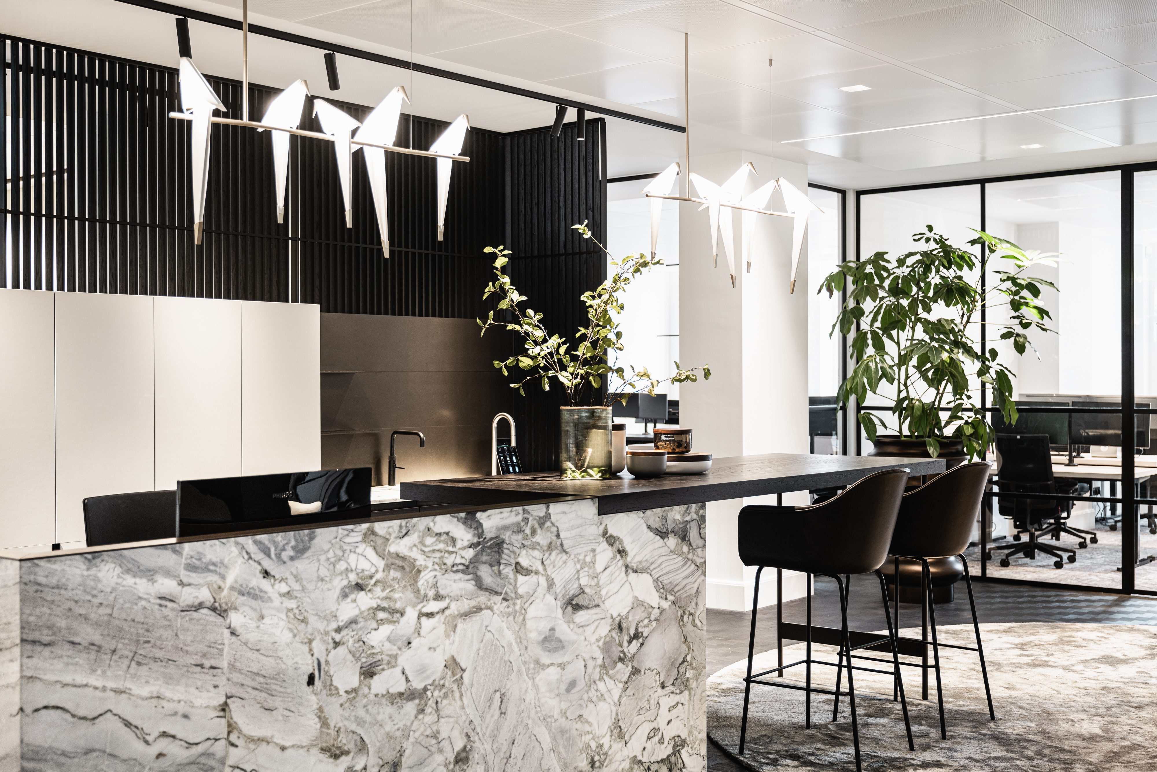 Dat dit kantoor nu een pláátje is, is niet toevallig. De keuzes voor zowel techniek als design kwamen zorgvuldig tot stand. Wij waren betrokken bij het lichtplan. Leverden de domotica-installatie. Monteerden de strakke, stijlvolle Kreon plafonds met geïntegreerde audio en verlichting. Hingen de exclusieve armaturen op. En tekenden voor basale functionaliteit als data-aansluitingen en een brandmeldinstallatie. Dát is mooi aan dit project. We deden het samen – en delen nu de trots.