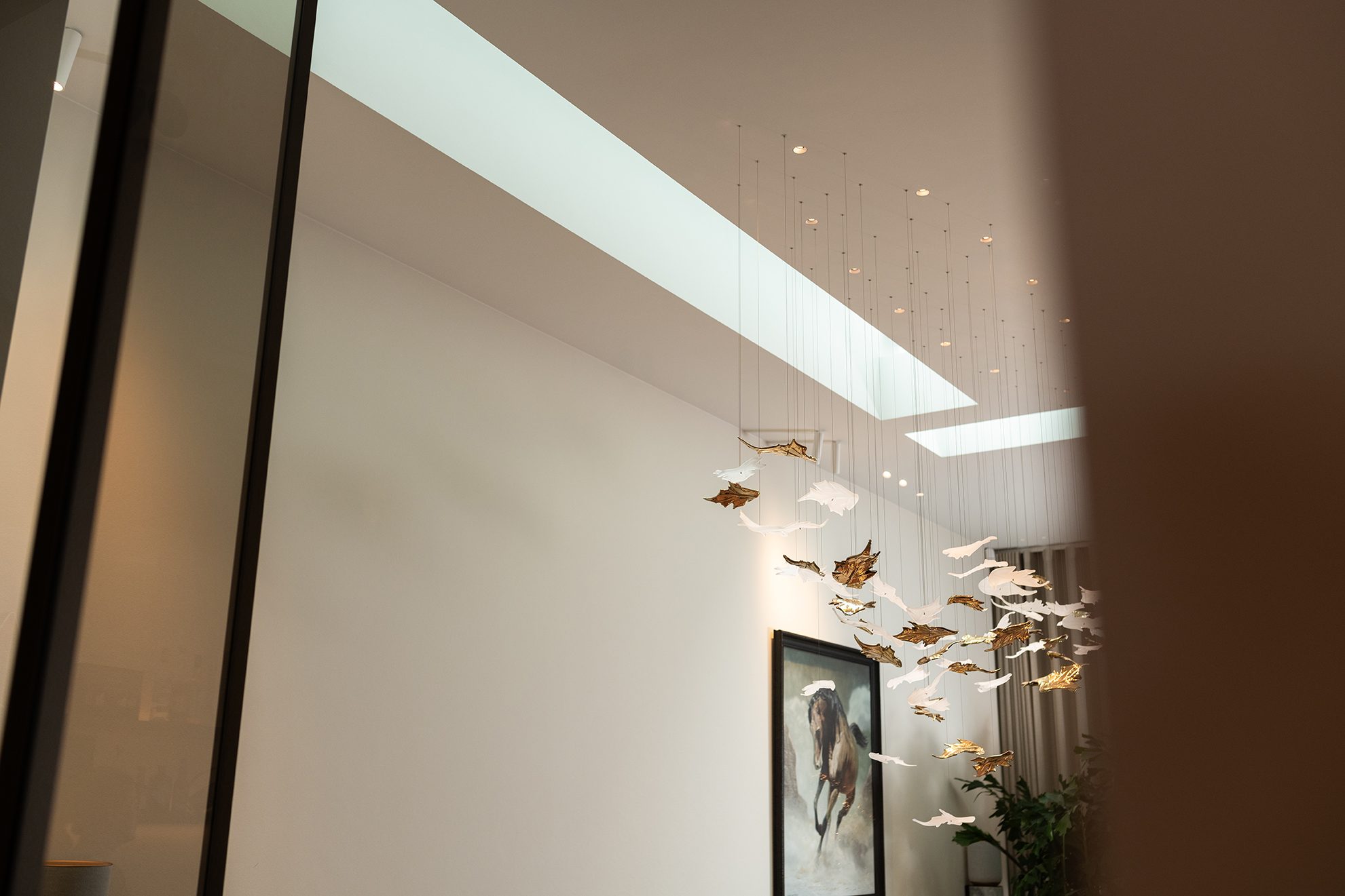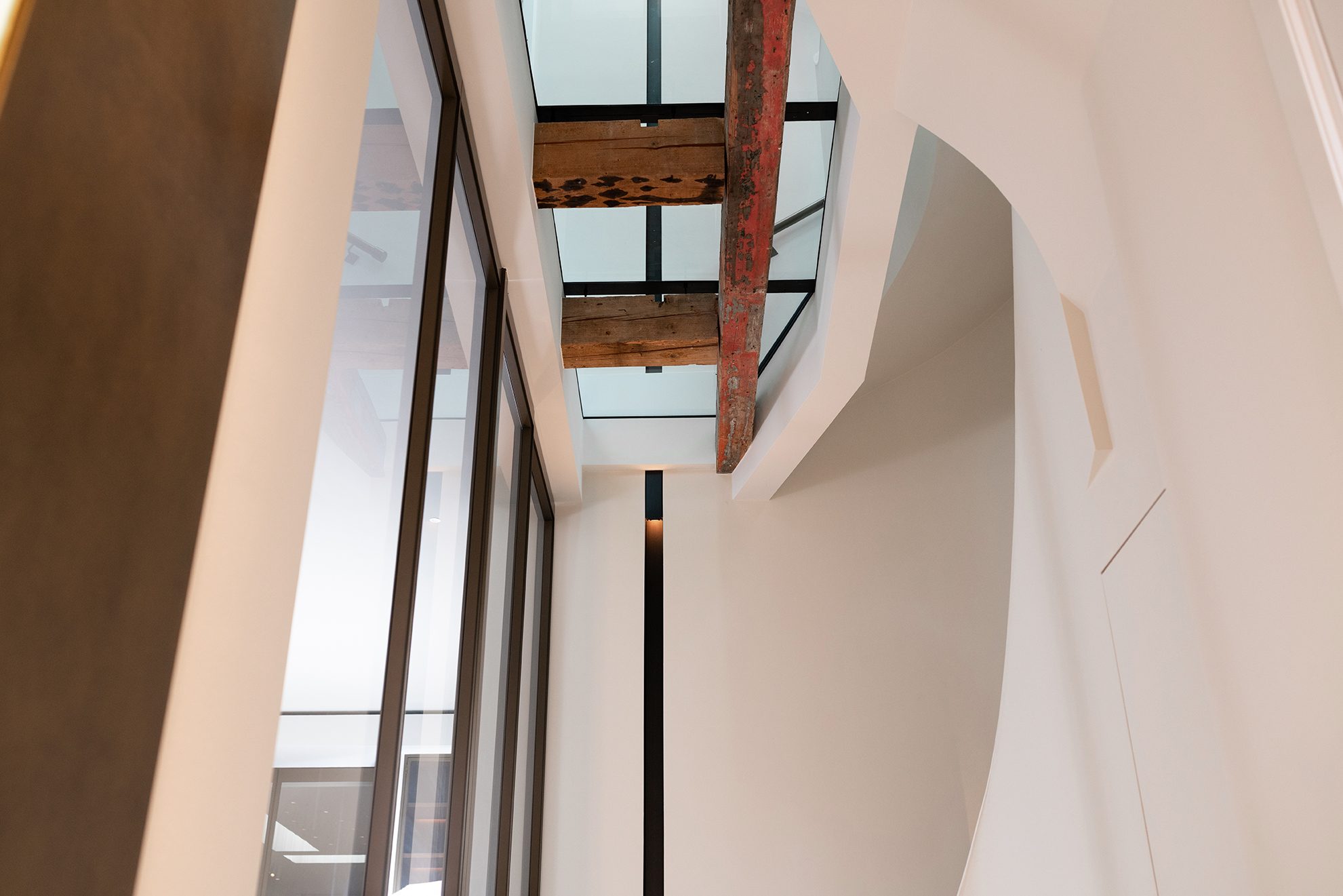 In het hart van Oud Beijerland, in een monumentaal pand dat ooit dienst deed als pastorie, heeft Delektro de verlichting en domotica tot leven gebracht. Een uitdaging, gezien het rijke verleden van het gebouw en de wens om moderne technologie naadloos te integreren in de klassieke sfeer. Maar zoals altijd bij Delektro, draait het niet alleen om techniek. Het gaat om het creëren van harmonie. Dankzij de lichtstraten die door de verschillende leefruimtes stromen, wordt het natuurlijke licht optimaal benut. Bij binnenkomst trekt de elegantie van de glazen vloeren direct de aandacht, die een doorlopend zicht bieden tot de nok van het huis, waar de boomtoppen in de verte zichtbaar zijn.